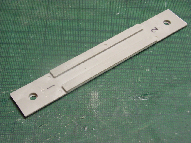 キット付属のものはもともと電車用の床板らしく、機器を接着するための切り欠きがあります。説明書どおり1ミリと0.3ミリのプラ板で1.3ミリのプラ板を作りその部分をふさぎます。