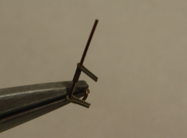 0.3mmの燐青銅線に、細く切ったエコーモデルの外径0.5×内径0.3mmの細密パイプを通し、ボナのエッチング製の割りピン2本で挟み込んでいます。