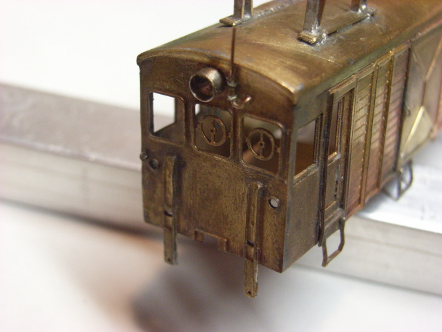 車体への固定は、前後の妻板に0.5mmの穴を二箇所開け、瞬間接着剤で行いました。