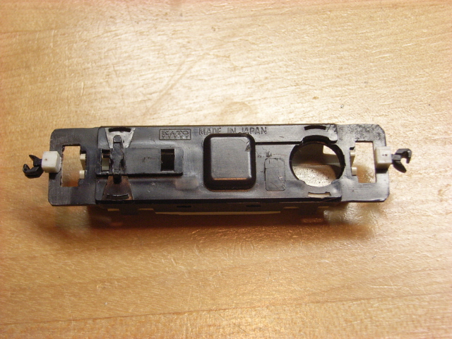 まずカプラーポケットから検討です。タウ゛ァサのアダプターやカトーのカプラーポケットを仮に車体に当てて確認しましたが、いずれも妻面と台車の間の僅かなスペースに収まりません。結局プラ板での自作を余儀なくさせられました。0.5ミリ厚のものを幅1.5ミリと2.0ミリの帯状に切断。それらを組み合わせ、2×2×2.5ミリのポケットを作成しました。