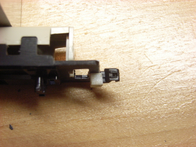 次にカプラーですが、今回シンキョーカプラーを初めて選択しました。まず、カプラーを通常通り組み立てます。次にナックルの後端から1ミリ離れたの柄の中心に0.3ミリの穴を開けます。その後、カプラーの後部を切り落とします。