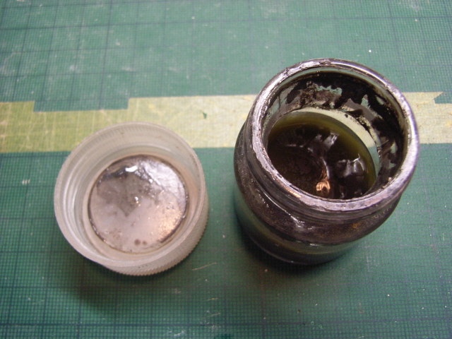 GMカタログの86年版に掲載されているものを参考にして、IMONのラッカーにシッカロールとプラの端材やプラの削りカスを混ぜて作っています。これを、ペーパーで荒らした接着面、今回は屋根の当該部分に盛り付けて、一週間ほど置いたものが、上の画像です。