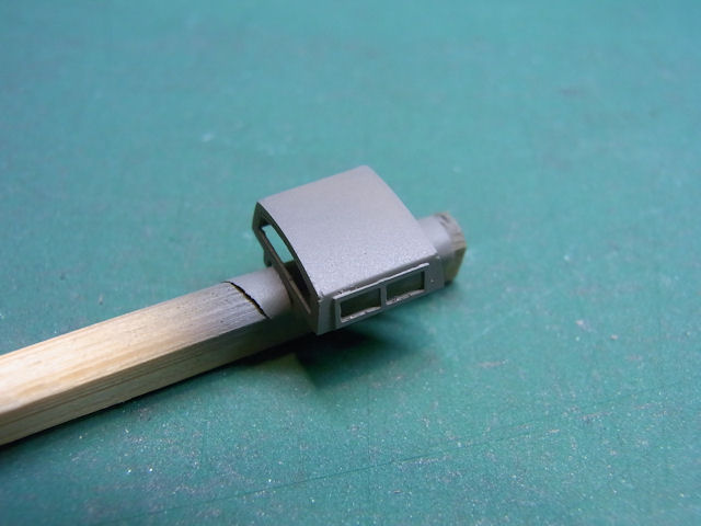 塗料箱の一番手前にあった灰色、軍艦色(2)の蓋を開けるとちゃんと液体の塗料が見えて一安心。カップに注いで吹いてみると粗ばかりがぼろぼろ見つかります。生乾きで粗の部分の周りの塗装を剥いで、瞬間接着剤を盛ります。瞬着硬化スプレーを吹いてしばらく放置、先日購入したWAVEのヤスリスティックで削ります。